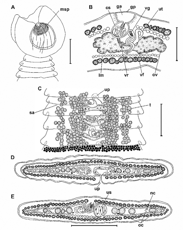 Type Material -MACN-Pa No. 512/1A-C (holotype) -IPCAS C-600 (each entire worm mounted on 3 slides with transverse sections of proglottides). (paratypes)