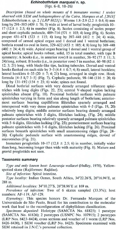 | Total Number of Type Specimens | Based on whole mounts of 6 immature worms |