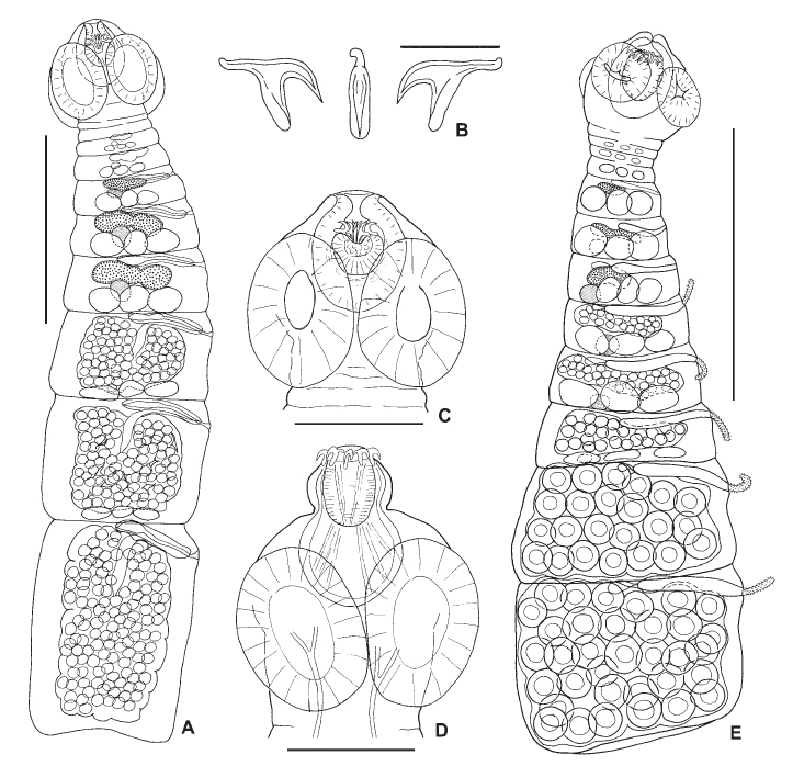 gulyaevi n. sp. (D) Strobila fragment with mature proglottids
