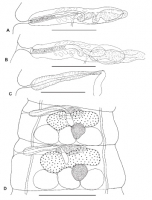 of the holotype of Staphylocystoides gulyaevi n. sp. Scale bars: A, B, C = 50 µm; D = 100 µm.