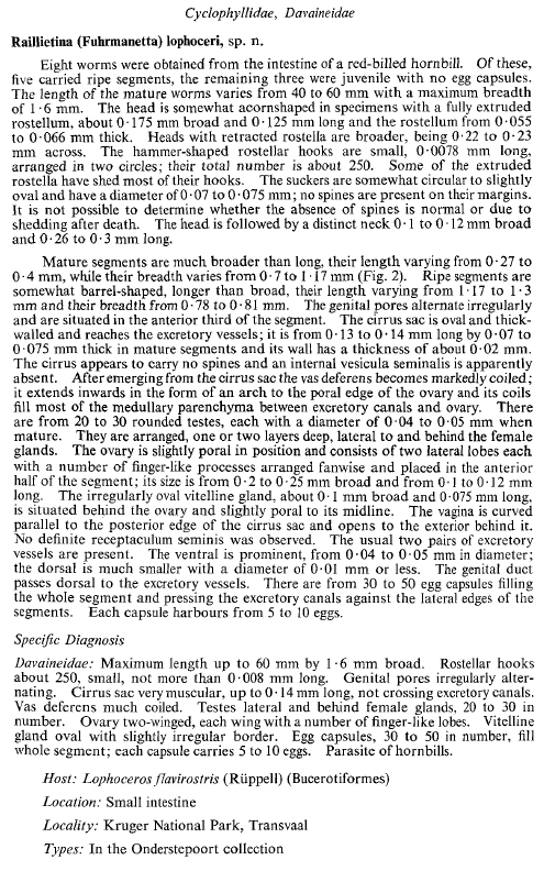 Raillietina (Fuhrmannetta) lophoceri Ortlepp, 1964