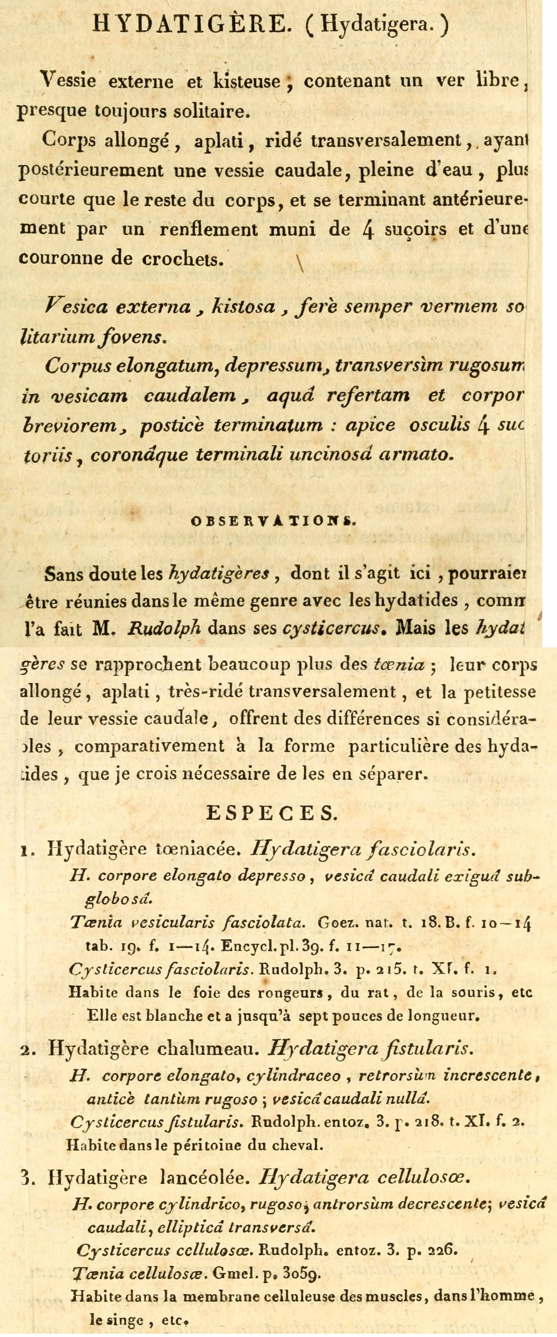 Rudolphi, C. A. 1808. Entozoorum, sive vermium intestinalium. Historia naturalis. Volumen I. Sumtibus Tabernae Librariae et Artium, Amstelaedami, 527 pp. (4751) Download PDFLamarck, J.-B., Chevalier de. 1816. Histoire Naturelle des Animaux sans Vertebres. Tome III. De l'Imprimierie d'Abel Lanoe, Paris, 586 pp. (6020) Download PDF |