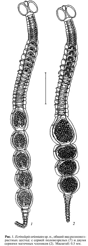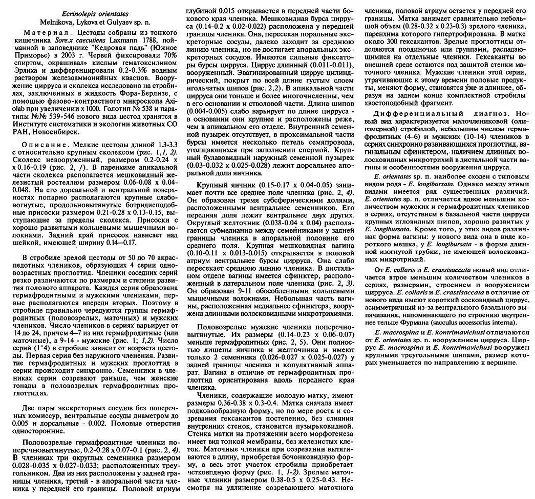 Mel'nikova, Y.A., K.A. Lykova, and V.D. Gulyaev. 2005. [Ecrinolepis orientalis sp. n. (Cyclophyllidea, Hymenolepididae), a new species of cestodes from shrews of southern Primorye.]. Zoolgicheskii Zhurnal 84: 746–749. (6449) Download PDF |