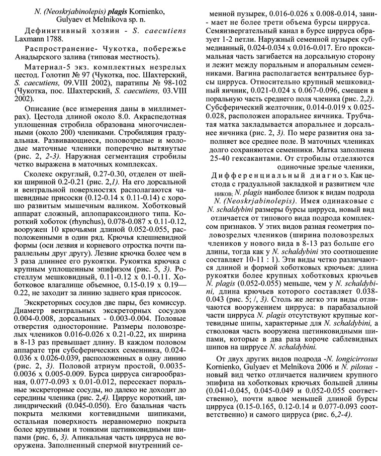 Evaginated cirri of species from subgenera Neoskrjabinolepis (Neoskrjabinolepis) (1-4) and N. (Neoskrjabinolepidoides) (5-8): 1 - N. schaldybini, 2 - N. pilosus, 3 - N. plagis, 4 -N. longicirrosus, 5 ... MoreEvaginated cirri of species from subgenera Neoskrjabinolepis (Neoskrjabinolepis) (1-4) and N. (Neoskrjabinolepidoides) (5-8): 1 - N. schaldybini, 2 - N. pilosus, 3 - N. plagis, 4 -N. longicirrosus, 5 - N. singularis, 6 - N. corticirrosus, 7 - N. nadtochijae, 8 - N. kedrovensis. Scale bars - 0.02 mm. |