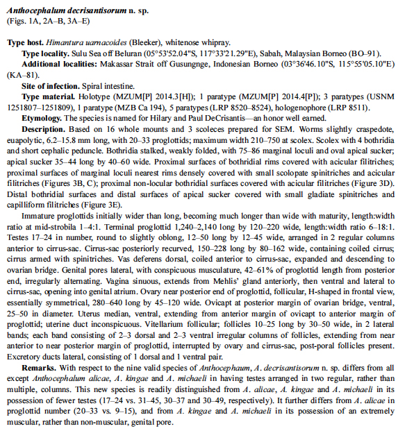 | Total Number of Type Specimens | 16 whole mounts and 3 scoleces prepared for SEM |