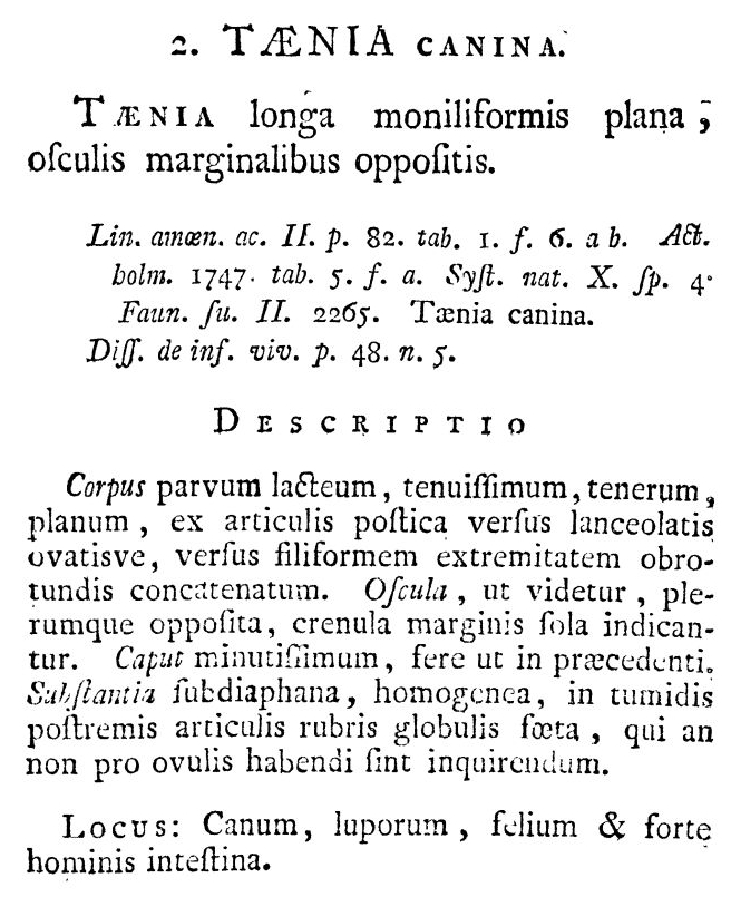 | Scientific Name Notes | Homonym of Taenia canina Linnaeus, 1758. |