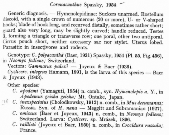 | Type Species | Coronacanthus polyacantha (Baer, 1931) Spasskii, 1954 |