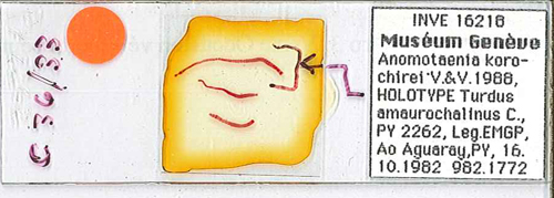 | Synonyms | -Anomotaenia korochirei Voser & Vaucher, 1988 |