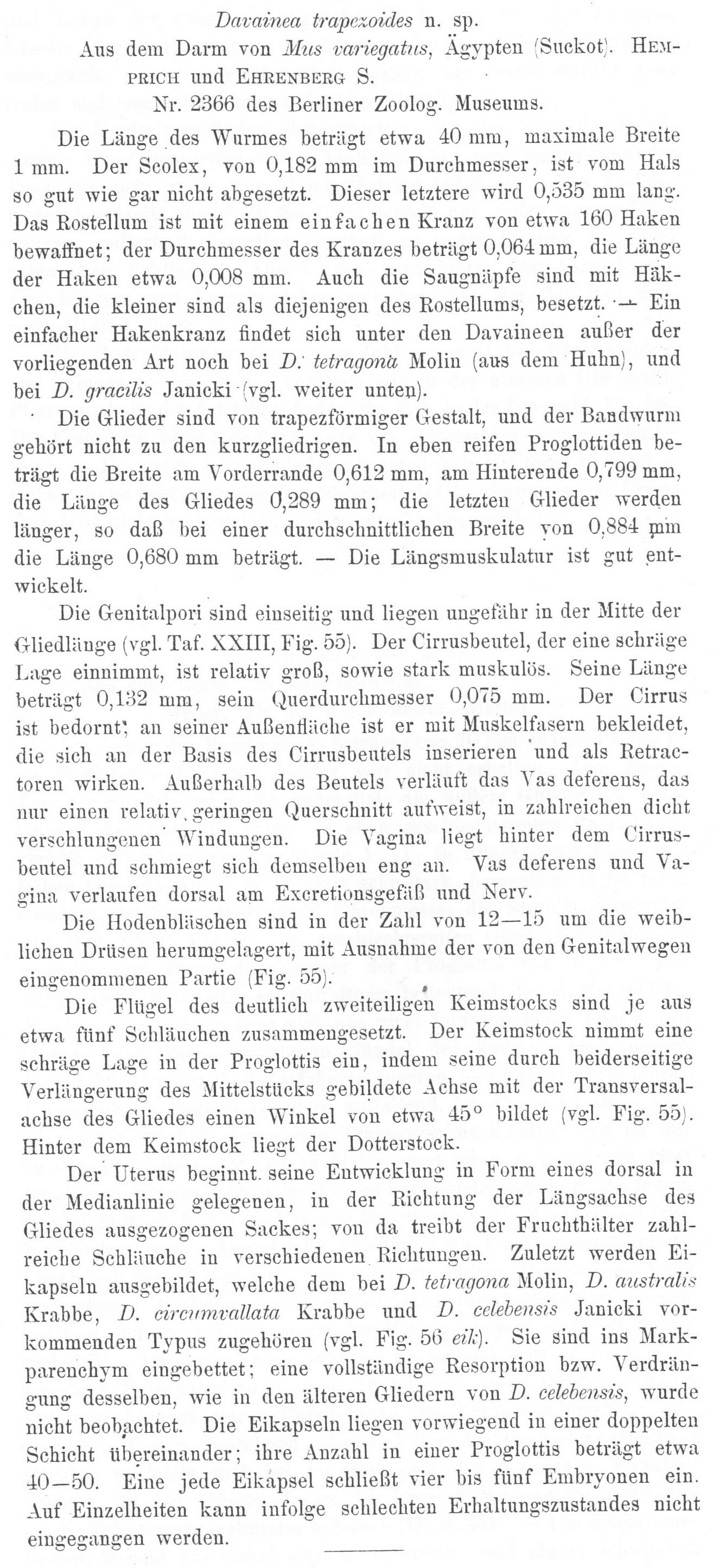 von Janicki, C. 1906. Studien an Säugetiercestoden. Zeitschrift für Wissenschaftliche Zoologie 8: 505-597. (2599) Download PDF |