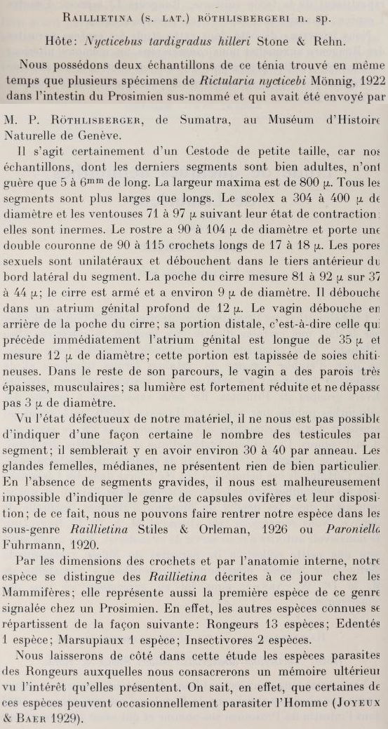 Baer, J. G. 1935. Etude de quelques helminthes de Lémuriens. Revue Suisse de Zoologie 42: 275-291. (2797) Download PDF |