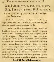 Rudolphi, C. A. 1809. Entozoorum, sive vermium intestinalium. Historia naturalis. Volumen II, Part I. Sumtibus Tabernae Librariae et Artium, Amstelaedami, 457 pp. (5872) Download PDF |