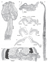 From Bernot et al, 2016 (Cit #6983); Fig. 7. Line drawings of Symcallio leuckarti. (A) Scolex (neotype NHMUK 2016.5.13.6); (B) terminal genitalia (voucher LRP 8896); (C) gravid worm