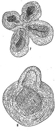 Plate XXXIII, FIGURES 7 & 8. Orygmatobothrium paulum n. sp. 7. Front view of head. Zeiss 2/A, draw-tube open. 8. Single bothrium, front view. Zeiss 2/A, draw-tube open.