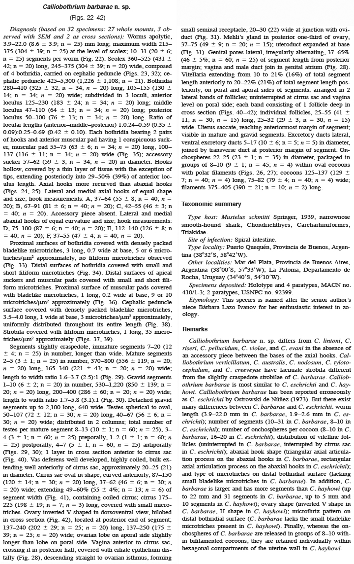| Synonyms | Calliobothrium barbarae Ivanov & Brooks, 2002 |