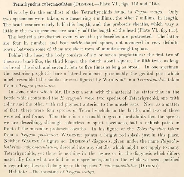 Shipley, A. E. and J. Hornell. 1906. Report on the cestode and nematode parasites from the marine fishes of Ceylon. Report to the Government of Ceylon on the Pearl Oyster Fisheries of the Gulf of Manaar (Herdman), Part 5 5: 43-96.