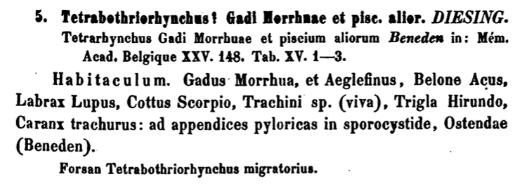 | Synonyms | Tetrarhynchus gadi morrhuae et piscium aliorum |