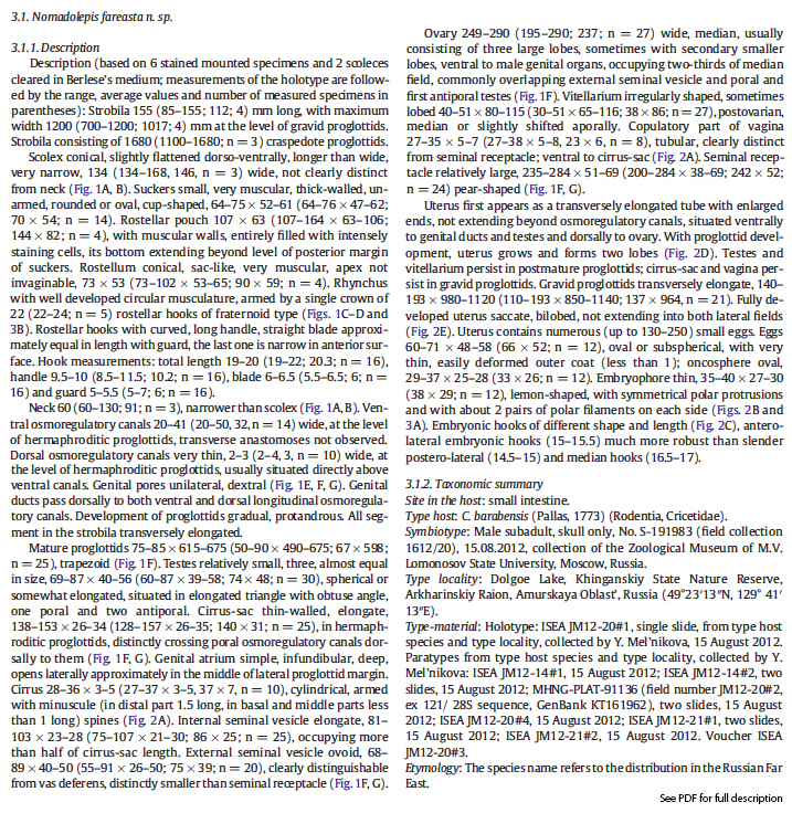 Makarikov, A. A., V. V. Tkach, S. M. Villa, and S. E. Bush. 2015. Description of two new species of Hymenolepis Weinland, 1858 (Cestoda: Hymenolepididae) from rodents on Luzon Island, Philippines. Systematic Parasitology 90: 27-37.