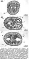 FIGURES 2830. Proglottid cross-sections of F. plicatilis n. sp.;