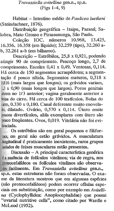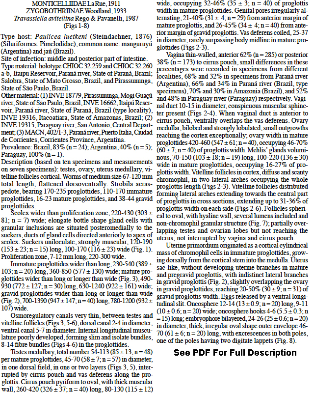 de Chambrier, A and Gil de Pertierra, A. A.. 2002. Redescription of Travassiella avitellina Rego & Pavanelli, 1987 (Proteocephalidea: Monticelliidae, Zygobothriinae), a Parasite of Paulicea luetkeni (Siluriformes) from South America. Mem Inst Oswaldo Cruz 97(5): 657-661. (6623) Download PDF |