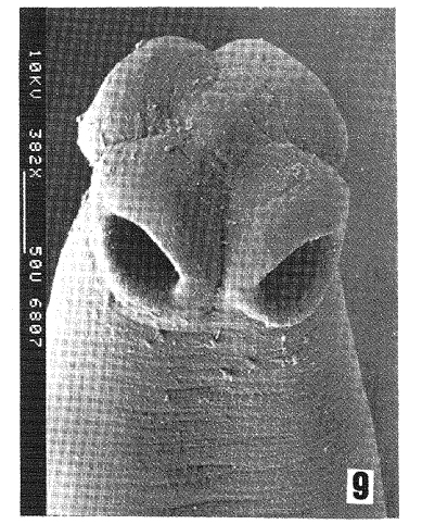 Fig. 9 - Travassiella avitellina gen.n., sp.n. Escolex em MEV. Escala = 382x.