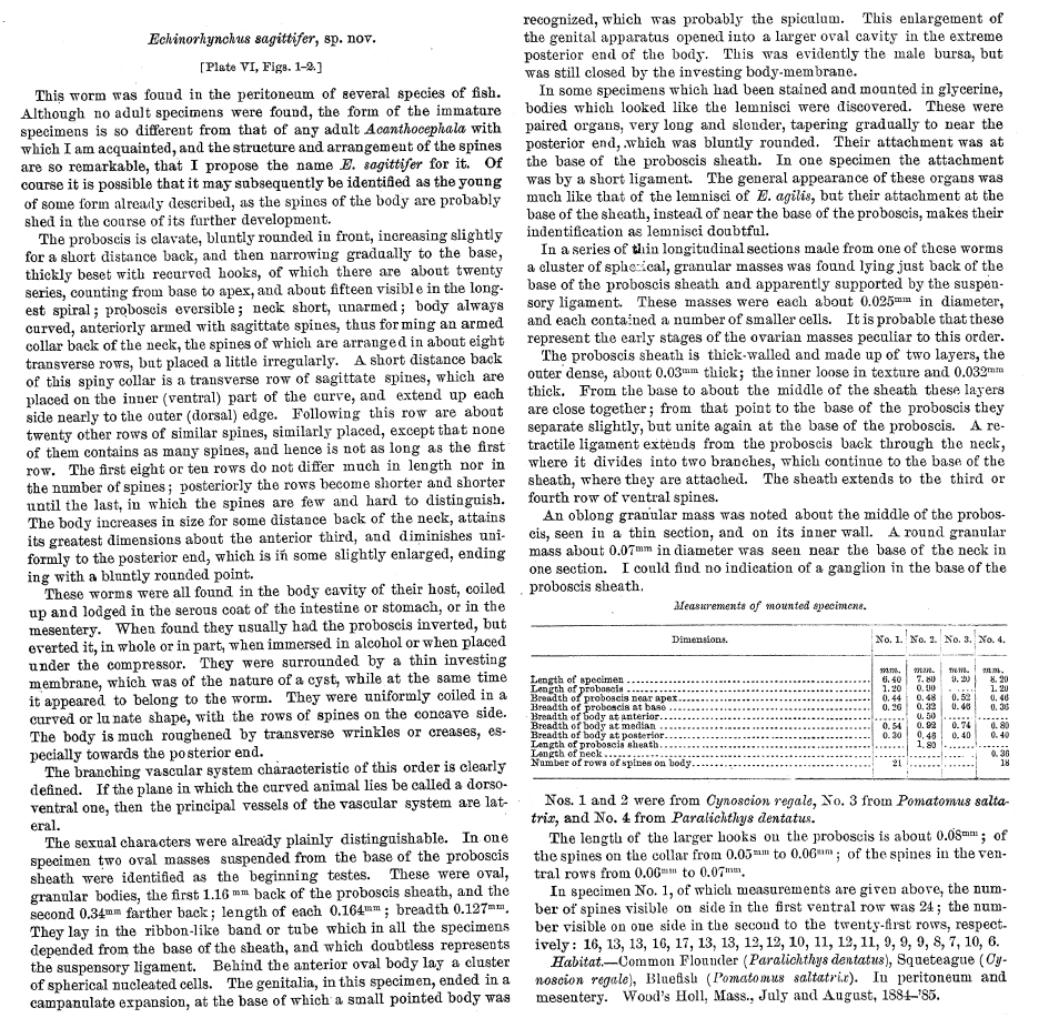Linton, E. 1889. Notes on Entozoa of marine fishes of New England, with descriptions of several new species. United States Commision of Fish and Fisheries. Part XIV. Report of the Commissioner for 1886 14: 453-511. (266) Download PDF |