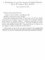 Sambon, L. L. 1907. 1. Descriptions of some new species of animal parasites. Proceedings of the Zoological Society of London 77(2): 282–283. (7062) |