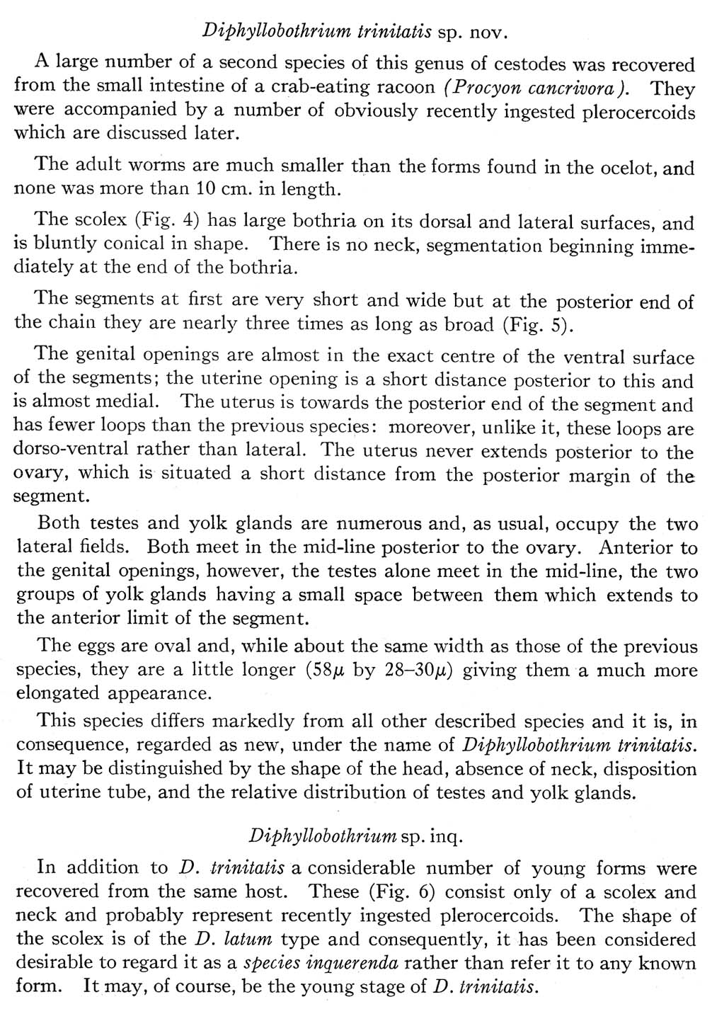 Cameron, T.W.M. 1936. Studies on the endoparasitic fauna of Trinidad. III Some paraites of Trinidad carnivores. Canadian Journal of Research 14: 25–38.