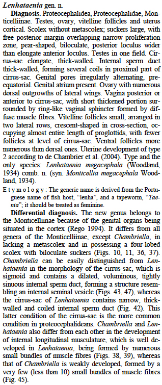| Type Species | Lenhataenia megacephala (Woodland, 1934) de Chambrier & Scholz, 2008 |
