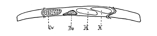 Fig. 42. Flächenschnitt durch eine Proglottis von Hymenolepis multispinosa. Bezeichnungen wie in Fig. 23.