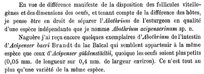 | Valid Name | Eubothrium acipenserinum (Cholodkovsky, 1918) Dogiel & Bychowsky, 1939 |