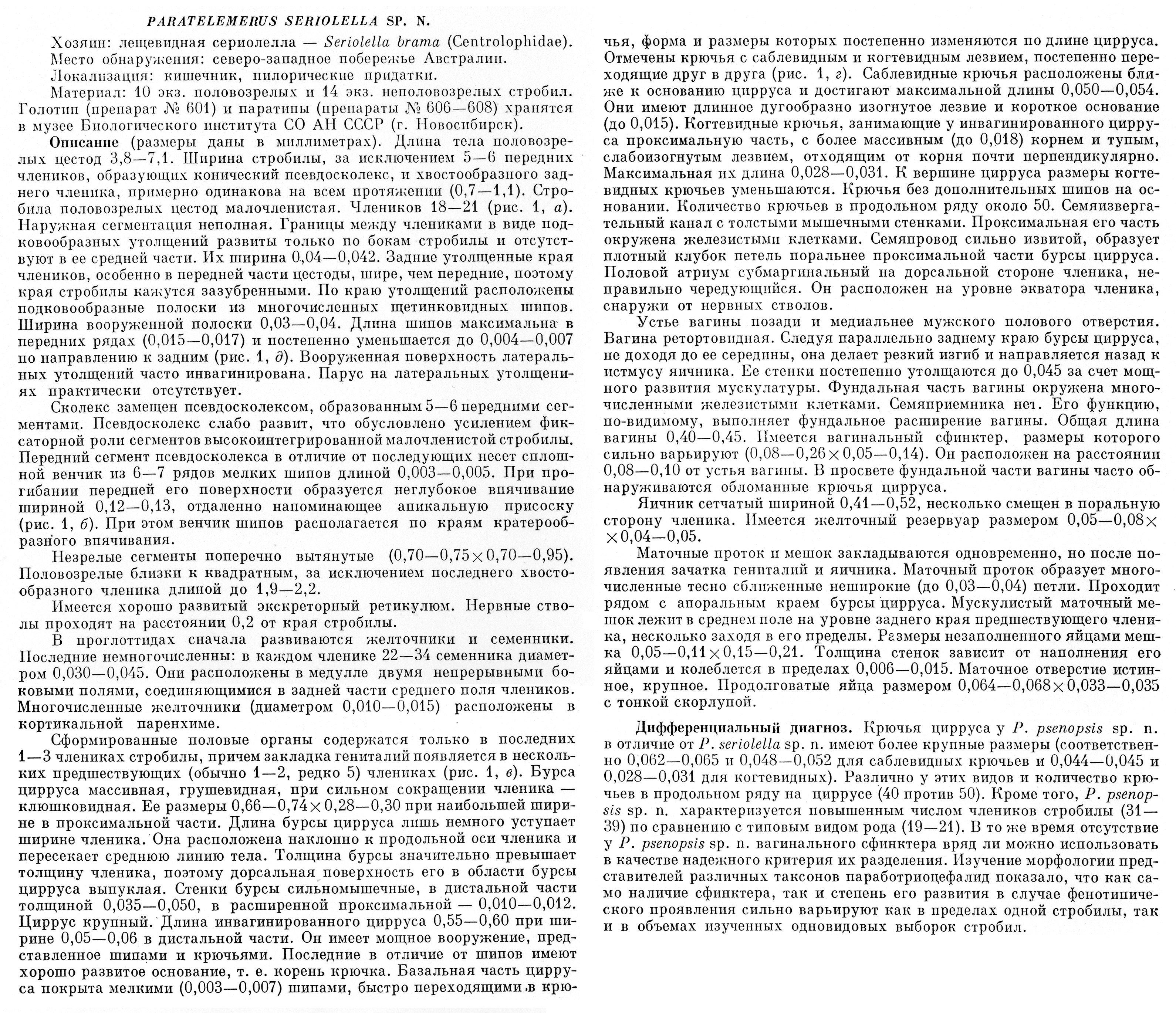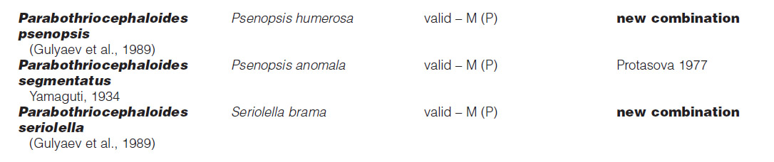 Gulyaev, V. D., V. D. Korotaeva, and Y. V. Kurochkin. 1989. Paratelemerus seriolella gen. et sp. n. and P. psenopsis sp. n. – new pseudophyllidean cestodes from the perciform fishes of the Australian shelf. Izvestiya Sibirskogo otdeleniya AN SSSR 2: 86–91. (7219) Download PDF |