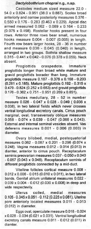 | Scientific Name Notes | - Kuchta et al. (2008) considered to be unrecognisable, because their descriptions contain a number of obvious errors and also indicate that a mixture of several taxa, probably of at least two cestode orders, were studied |