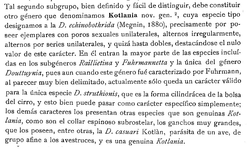 | Type Species | Kotlania echinobothrida (Megnin, 1880) Lopez-Neyra, 1929 |