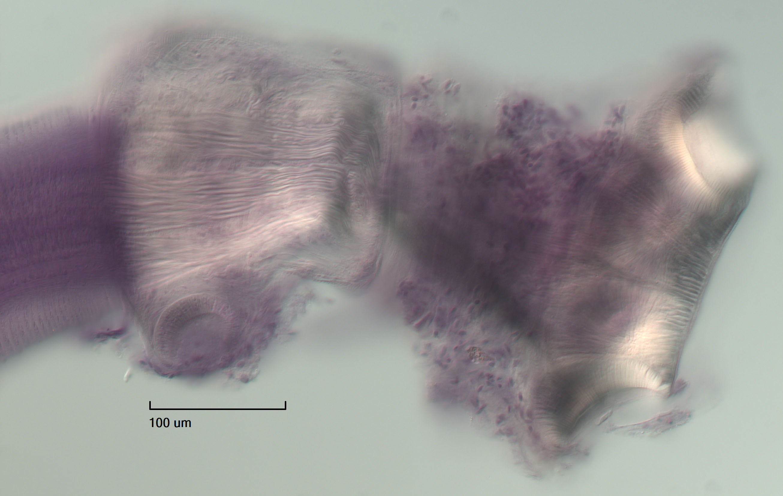 | Voucher Material | Nine immature or incomplete voucher specimens (7 whole mounts, and 2 scoleces prepared for SEM and their whole-mounted vouchers) retained in the personal collection of KJ at the University of Kansas |