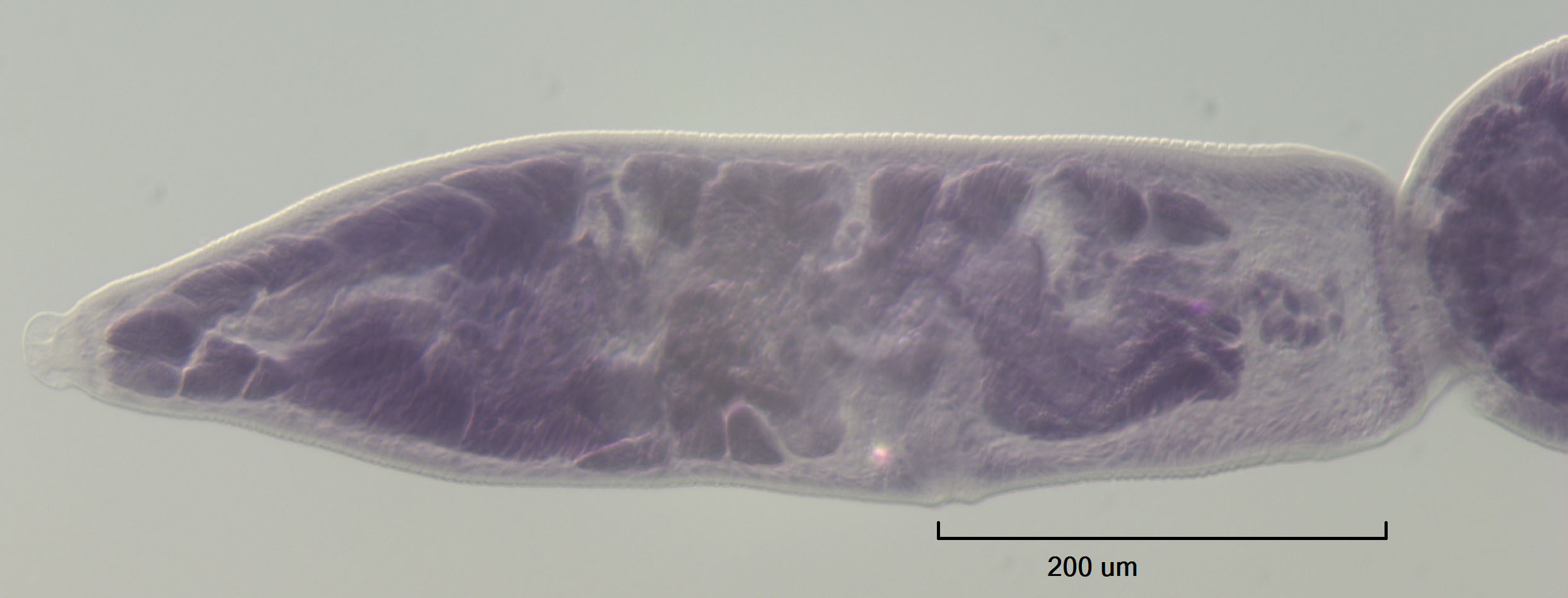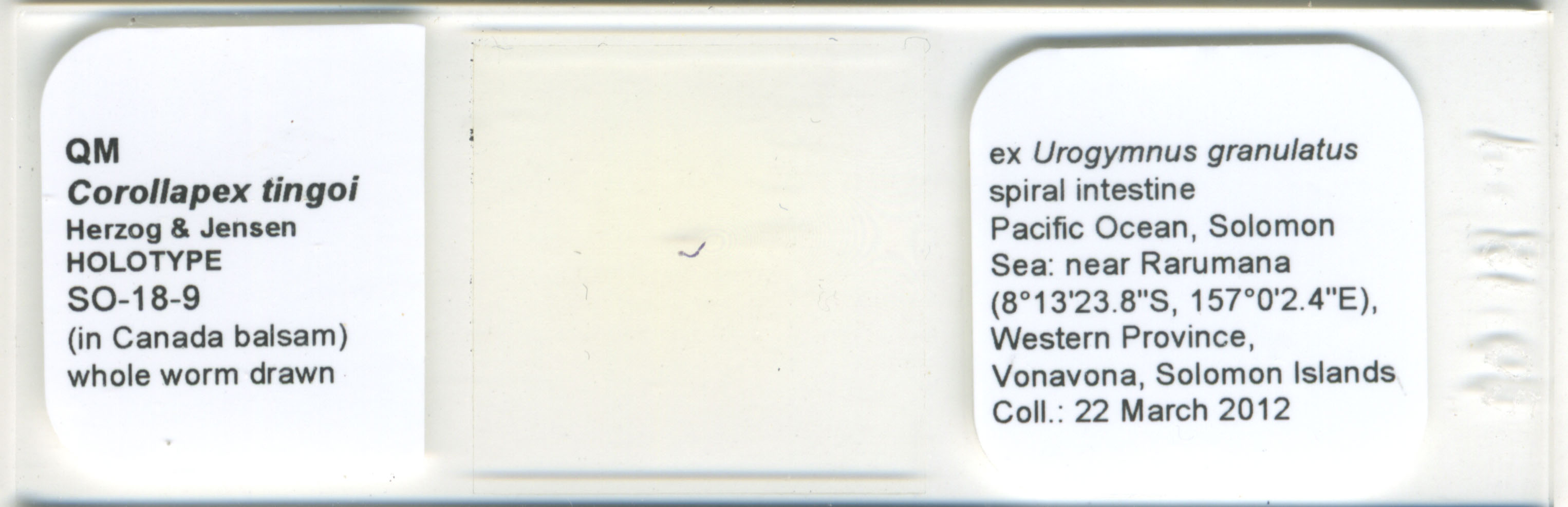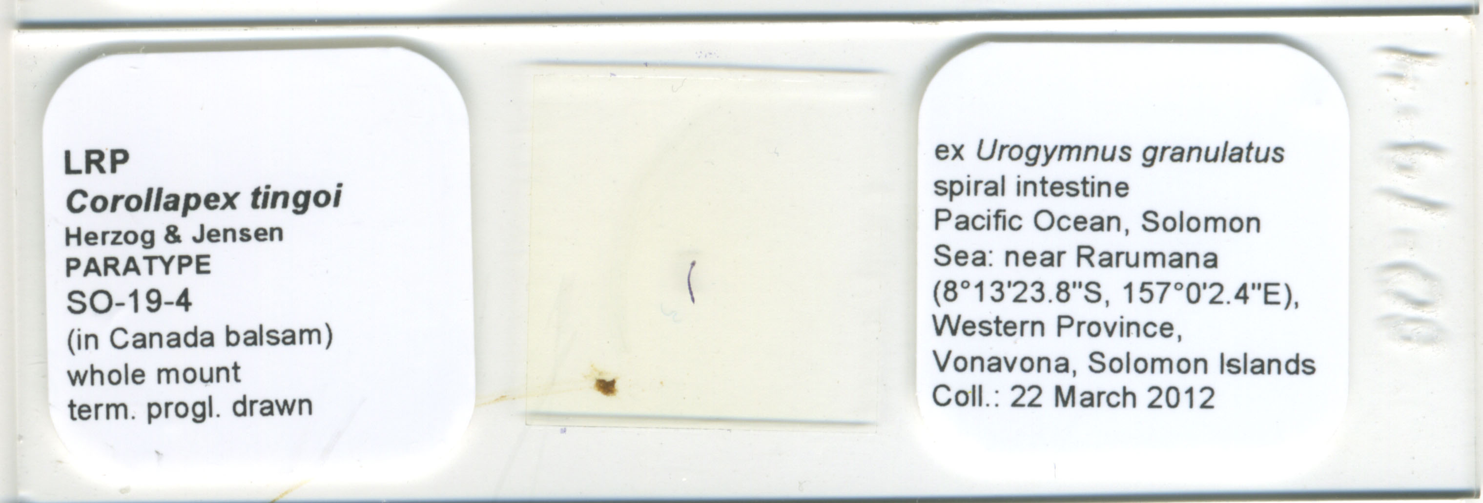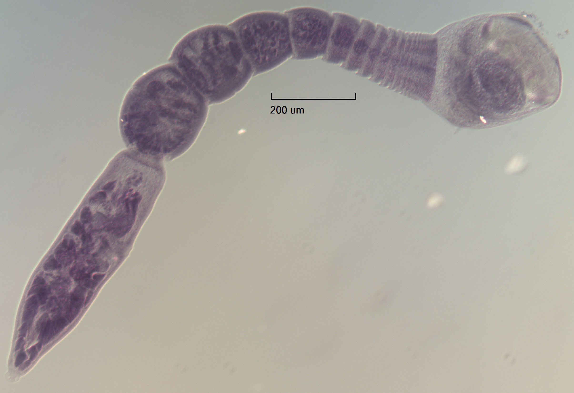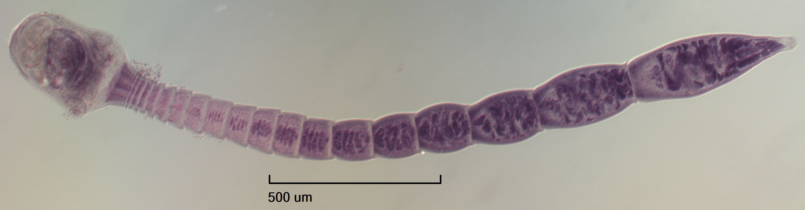 Total Number of Type Specimens 14 whole mounts, 1 terminal proglottid cross-section series, 2 scolex facial section series, 1 scolex and 2 whole worms prepared for SEM