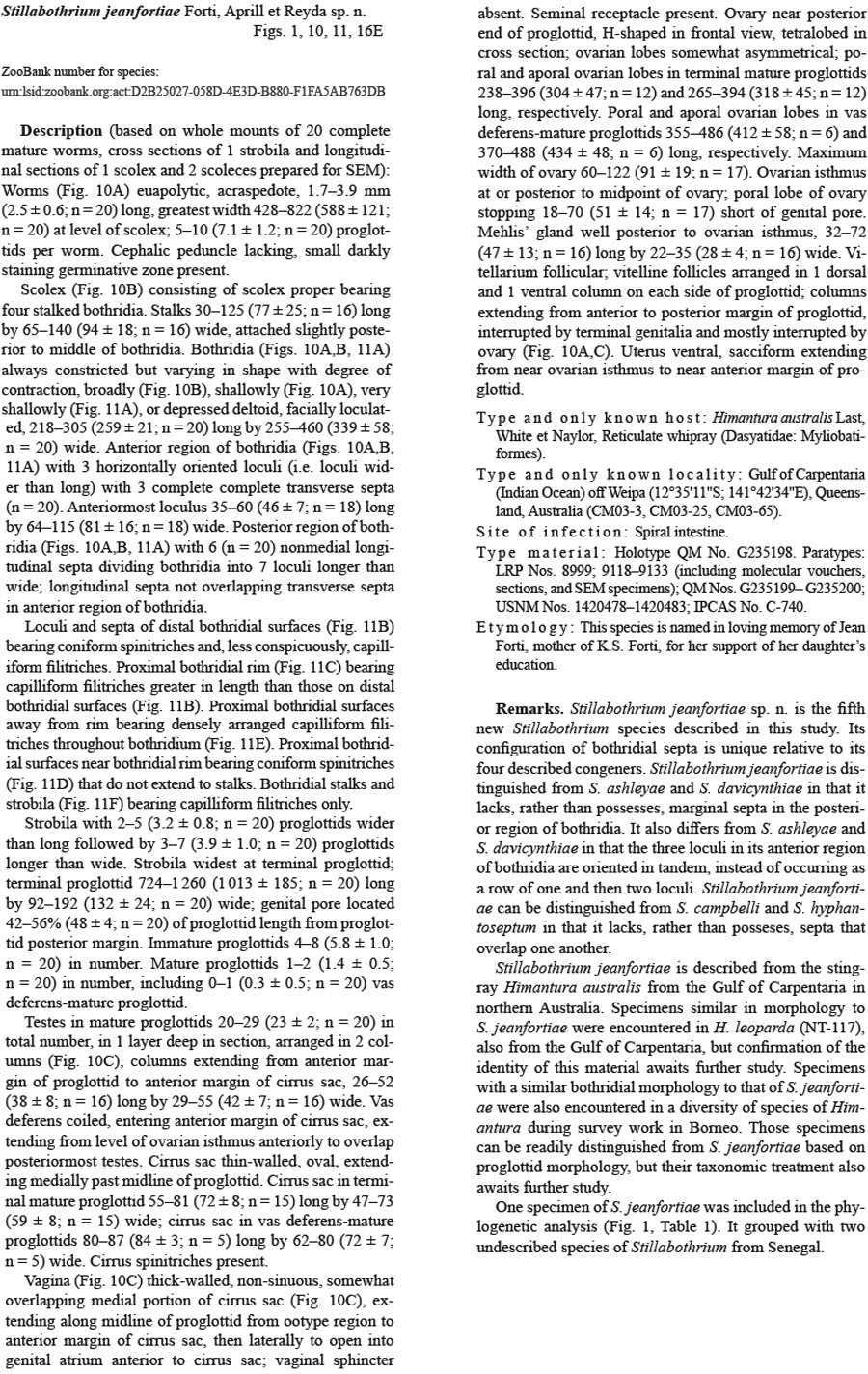 | Scientific Name Notes | Stillabothrium was referred to by Healy et al. (2009) as New Genus 3. |
