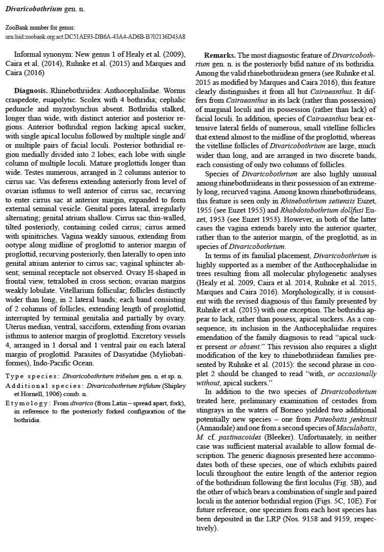 | Type Species | Divaricobothrium tribelum Caira, Healy, Marques & Jensen, 2017 |