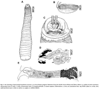 dorsoventral view; B, ... MoreFig. 1. Line drawings of Heterosphyriocephalus encarnae n. sp. from Alopias pelagicus Nakamura from the Pacific Ocean off Boca del Álamo, Mexico. A, outline of entire specimen,