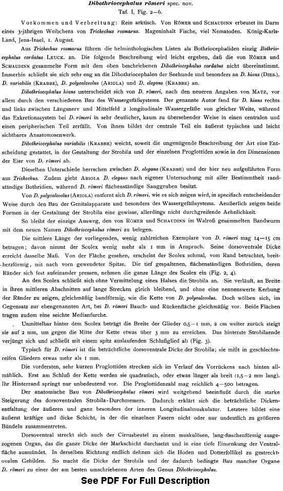 | Synonyms | Dibothriocephalus romeri Zschokke, 1903 Dibothriocephalus römeri Zschokke, 1903 |