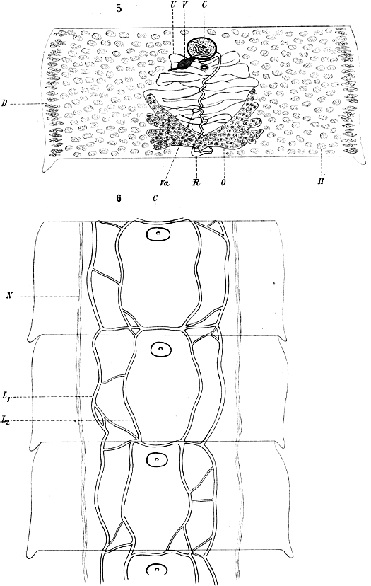 Fig. 5. D. römeri nov. spec. Reife Proglottide, Ventralansicht. Die dorsal gelegene Vesicula seminalis ventral vorgezogen. Fig. 6. D. römeri nov. spec. Das centrale Exkretionssytem in ventraler Ansicht. L. 1 äuBeres LängsgefäB. L. 2 inneres LängsgefäB.