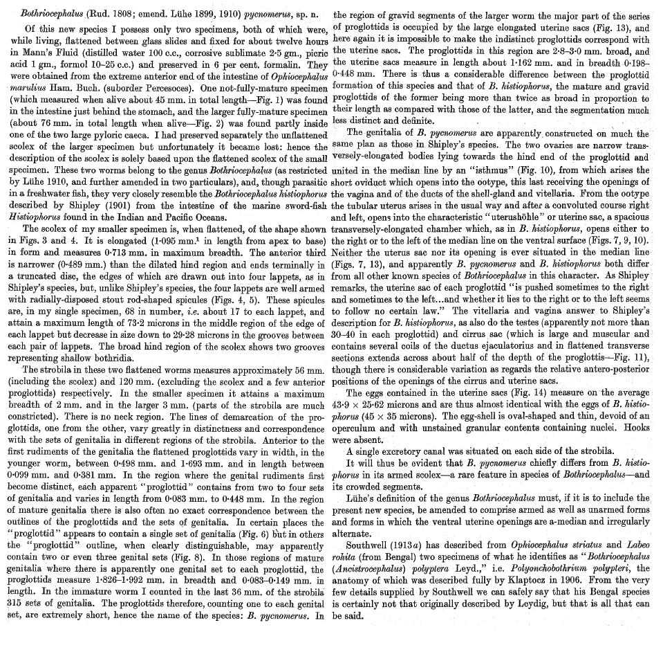 | Synonyms | Bothriocephalus pycnomerus Woodland, 1924 |