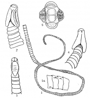 Fig. 2. Idem. Scolex magnified, viewed obliquely to show one of the bothria.