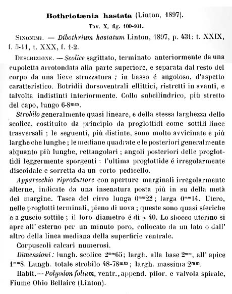 Linton, E. 1897. Notes on cestode parasites of fishes. Proceedings of the United States National Museum 20: 423-456. (272) Download PDFAriola, V. 1900. Revisione della famiglia Bothriocephalidae s. str. Archives de Parasitologie 3: 369-484. (6282) Download PDF |