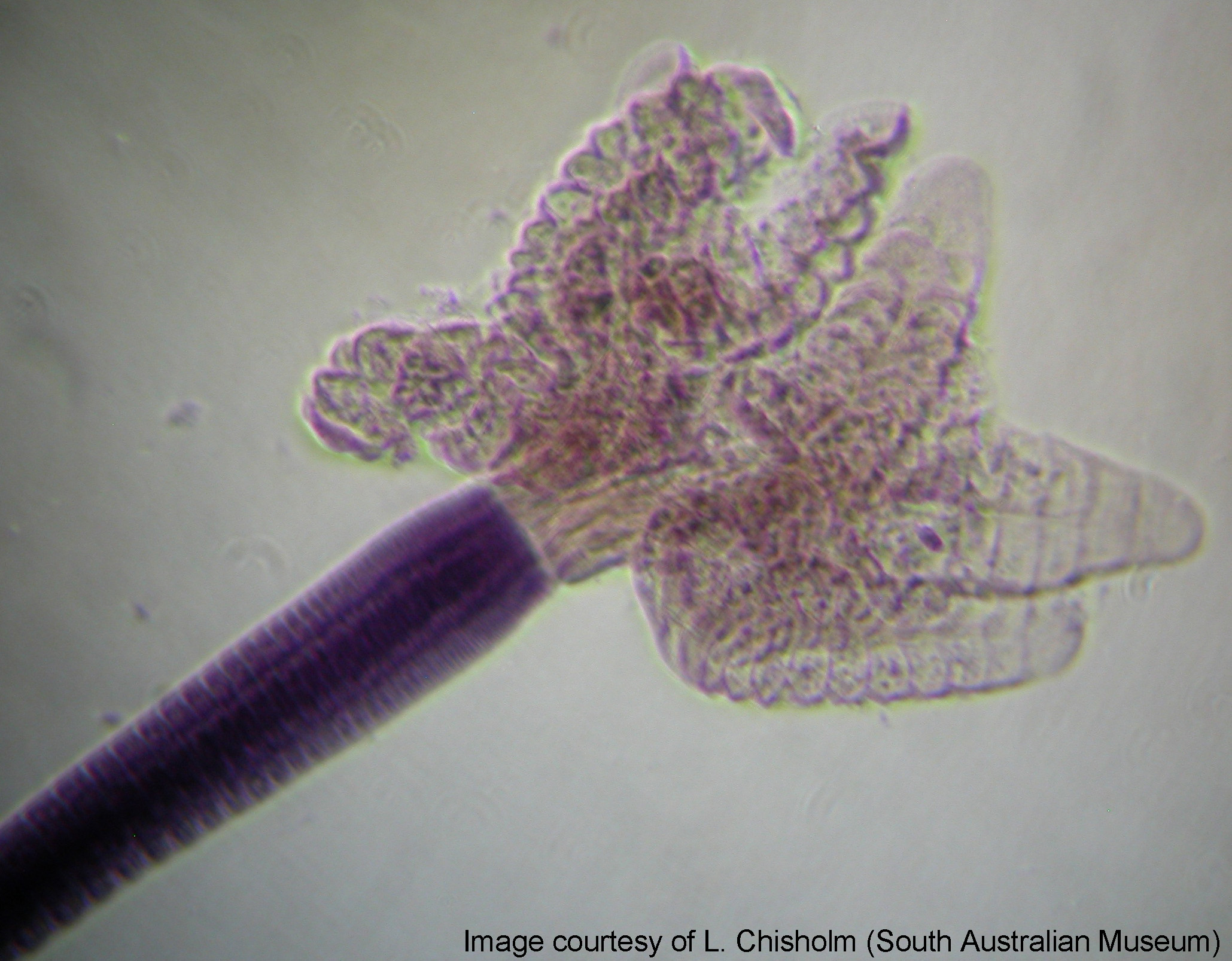 Type Material Holotype (SAM 36625), 8 paratypes (SAM 36626-33), 2 sets of serialsections (SAM 35665).