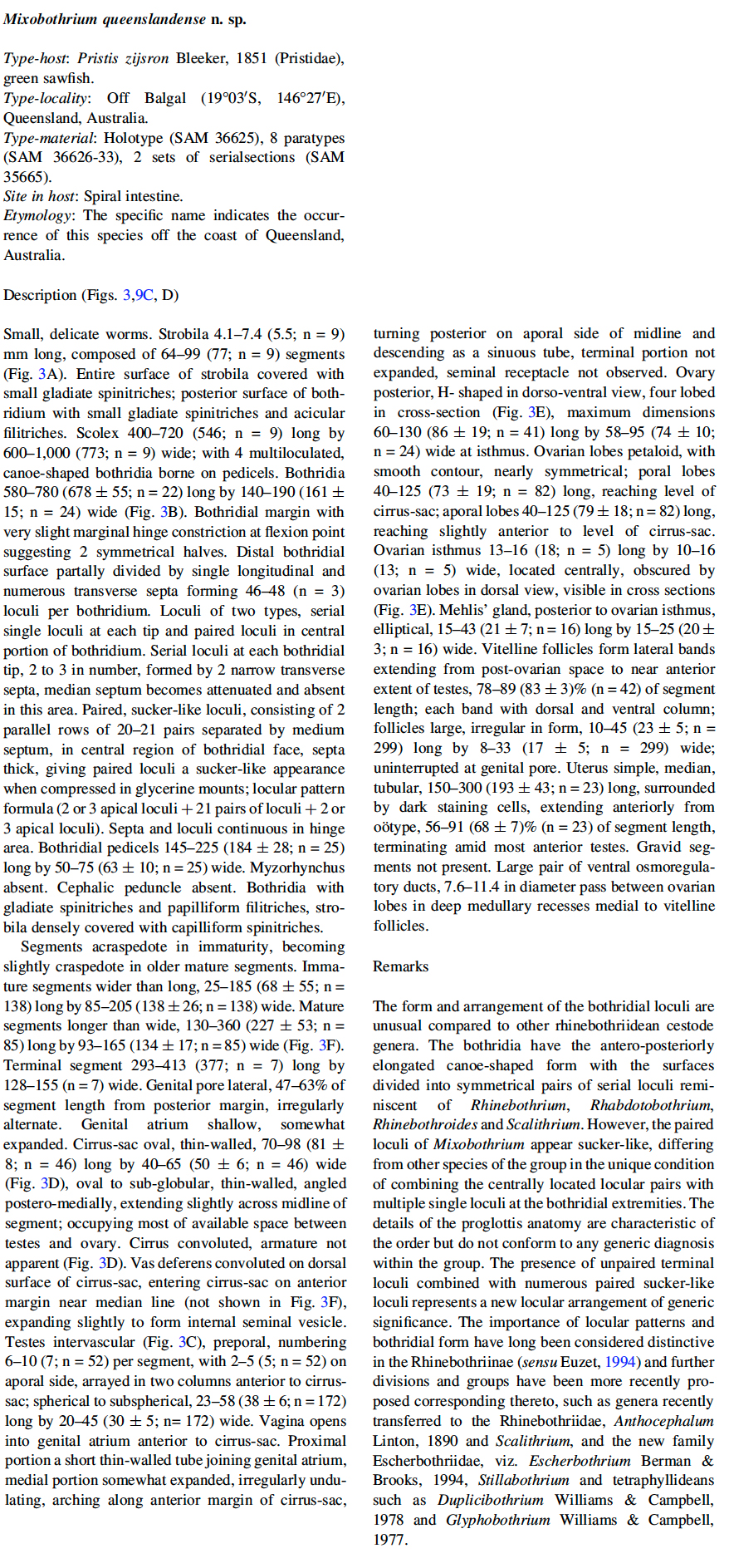 Mixobothrium queenslandense Coleman, Beveridge, & Campbell, 2019