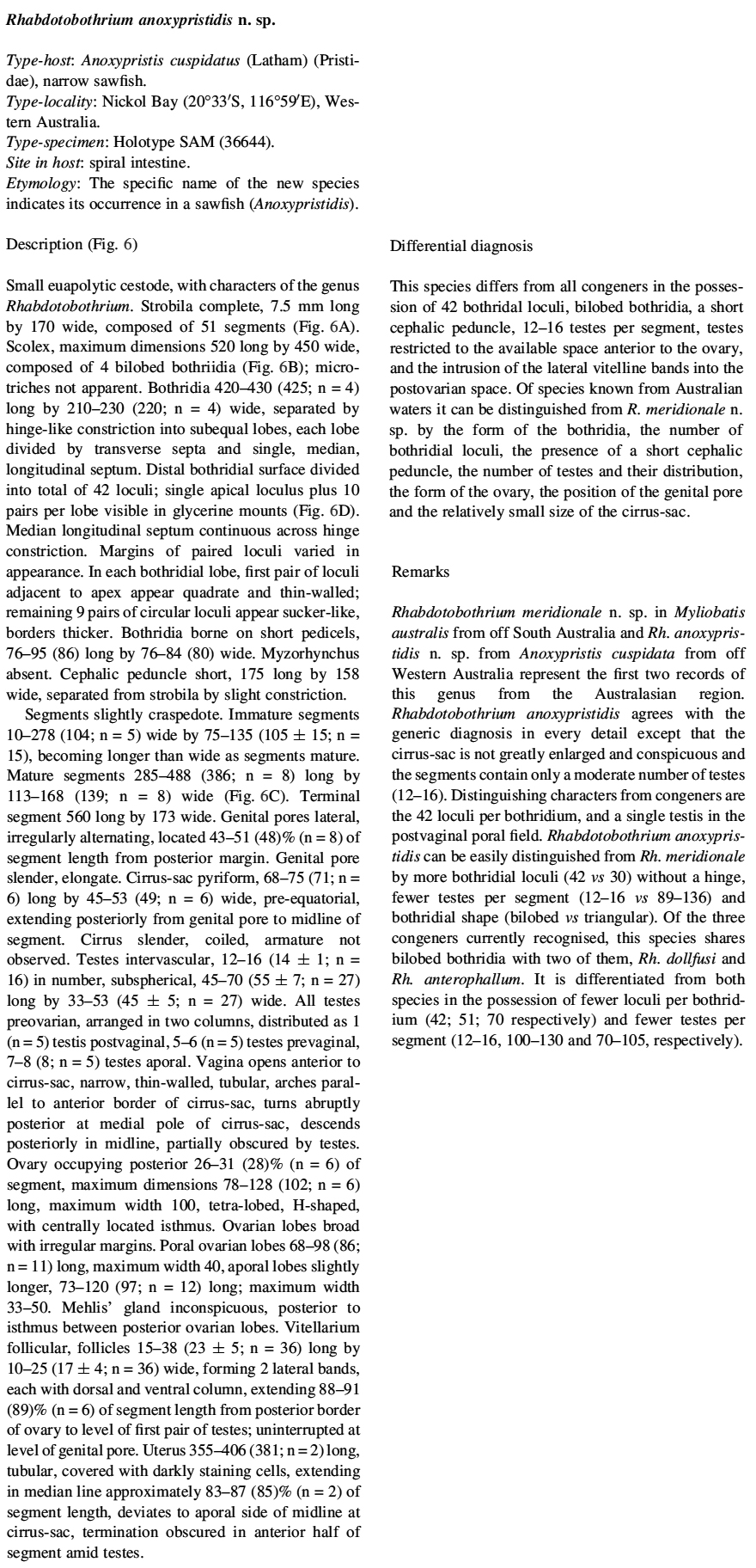 | Synonyms | Rhabdotobothrium anoxypristidis Coleman, Beveridge & Campbell, 2019 |