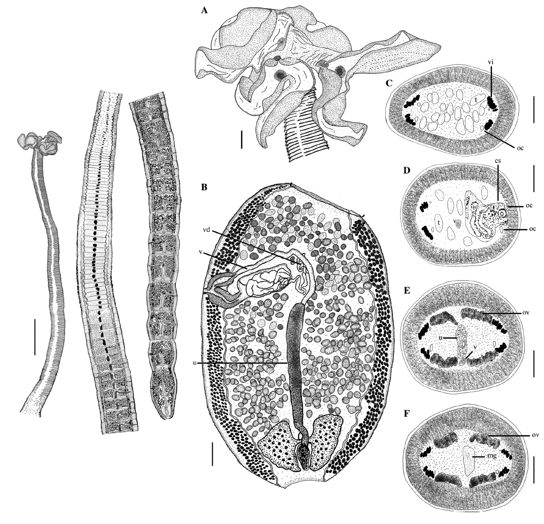 Total Number of Type Specimens Based on whole mounts of 26 mature specimens; 2 scoleces observed with SEM; cross sections of 1 mature strobila.