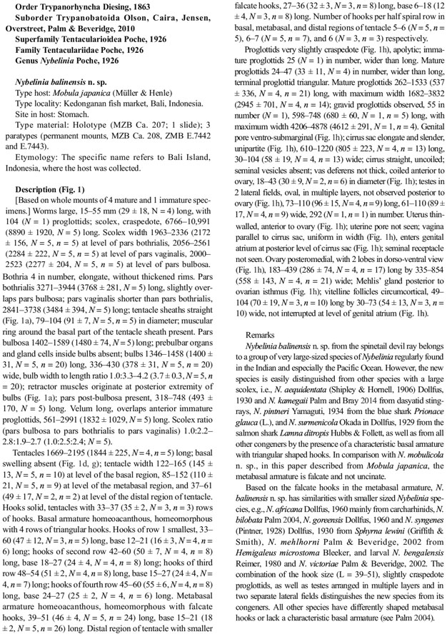 Palm, H. P., N. Palm, and M. Haseli. 2019. Tentaculariid trypanorhynchs (Platyhelminthes: Cestoda) from Mobula japanica (Müller & Henle) from Indonesia, with the description of two new species. Parasitology Research 118: 3307–3312.