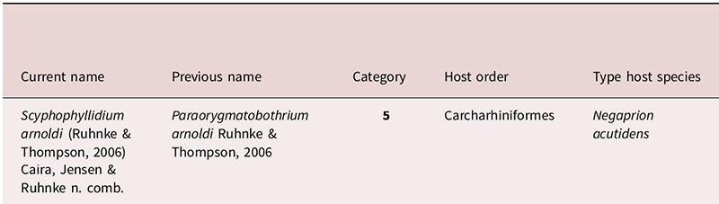 | Synonyms | Paraorygmatobothrium arnoldi Ruhnke & Thompson, 2006 |