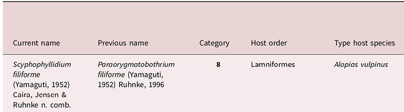 | Synonyms | Phyllobothrium filiforme Yamaguti, 1952; Paraorygmatobothrium filiforme (Yamaguti, 1952) Ruhnke, 1994 |